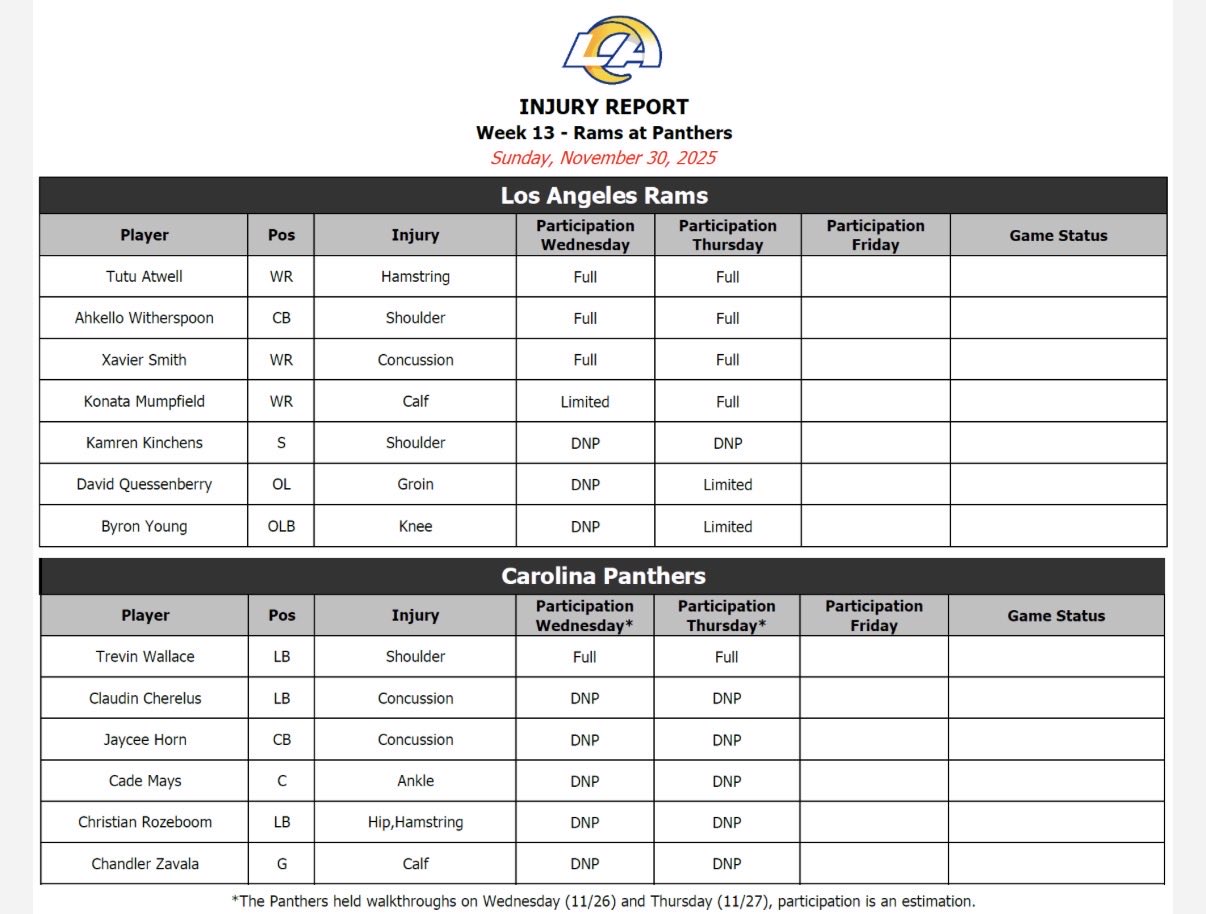 — Los Angeles Rams (@RamsNFL) November 27, 2025